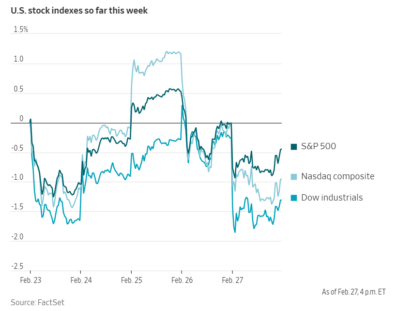 The Nasdaq Composite fell -0.92%, resulting in a cumulative monthly loss of -3.38%. The S&P 500 retreated -0.43% on the day and closed February down -0.87%. The Dow Jones Industrial Average declined -1.05% on Friday, equivalent to a loss of 521.28 points, yet managed to eke out a modest monthly gain of +0.17%. The Dow extended its monthly winning streak to ten consecutive months, the longest such run since 2018.