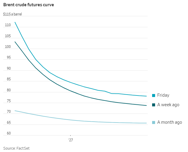 Brent futures for May settled up $1.79, or +1.66%, at $109.55 a barrel, the highest since July 2022. US WTI crude futures for April, which expired on Friday, settled up $3.71, or +3.90%, at $98.81.